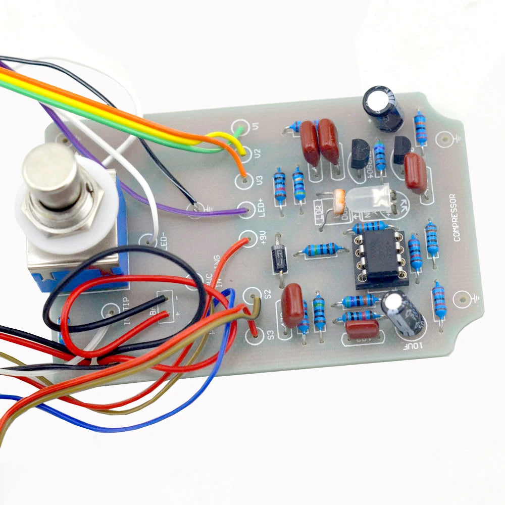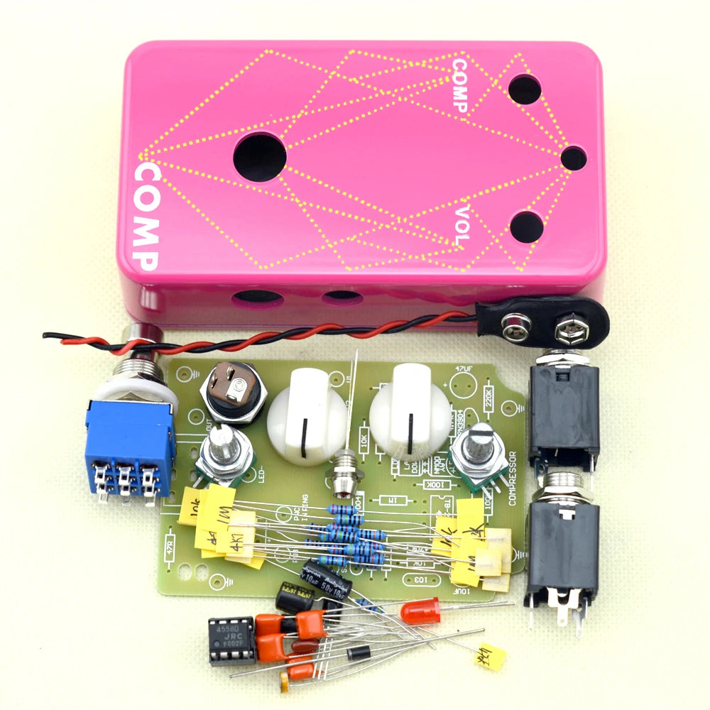Build your own dynamic tone control with this complete DIY compressor pedal kit. Featuring a compact 1590B enclosure, true bypass switching, and a 3PDT 9-pin footswitch, it's perfect for tone tinkerers and pedal enthusiasts. Smooth out your signal and add sustain – all while learning and customizing your own effects pedal.