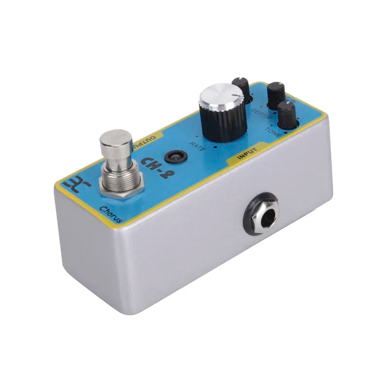 The Eno TC51 Chorus CH-2 is an electric guitar effect pedal delivering rich, layered chorus tones. Featuring an adjustable knob for precise control and true bypass to preserve your original tone, this pedal adds depth and shimmer to your sound. Ideal for players looking to enhance their clean or distorted tones with classic chorus effects.