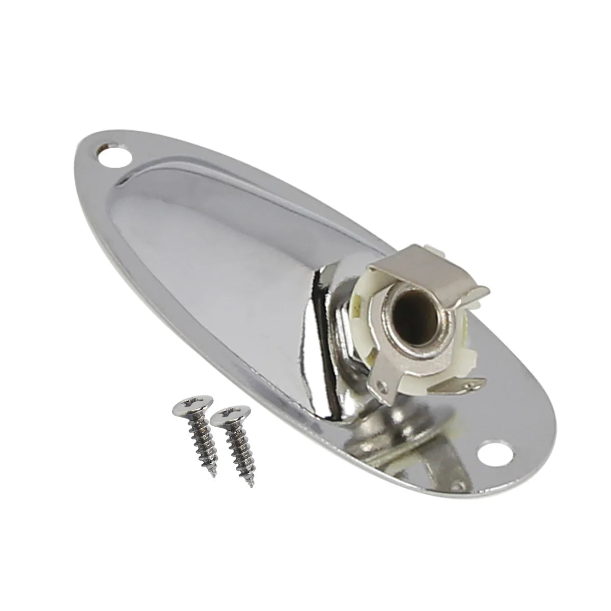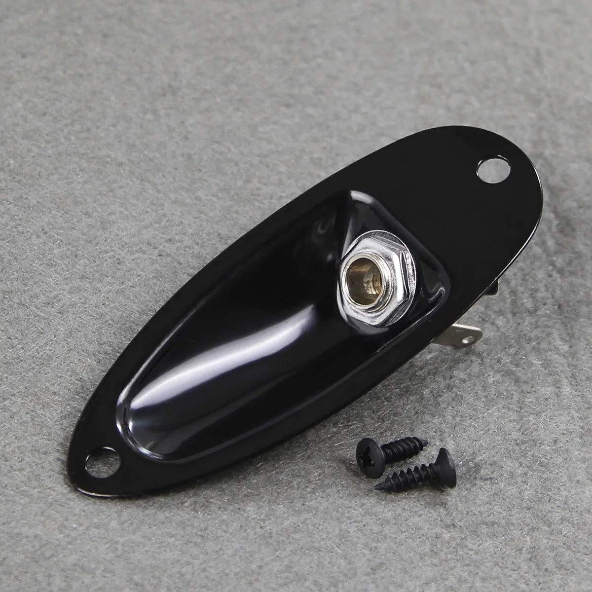 FLEOR 1PCS Boat Style Input Jack for guitar, designed for ST-style guitars with a 1/4" (6.35mm) connection. Available in chrome or black finishes, this durable jack socket ensures a secure connection for your instrument. Ideal for replacing or upgrading the input jack on your electric guitar, providing both functionality and a sleek appearance to complement your setup. Choose the finish that best suits your guitar's style.