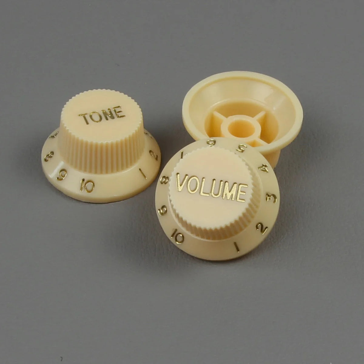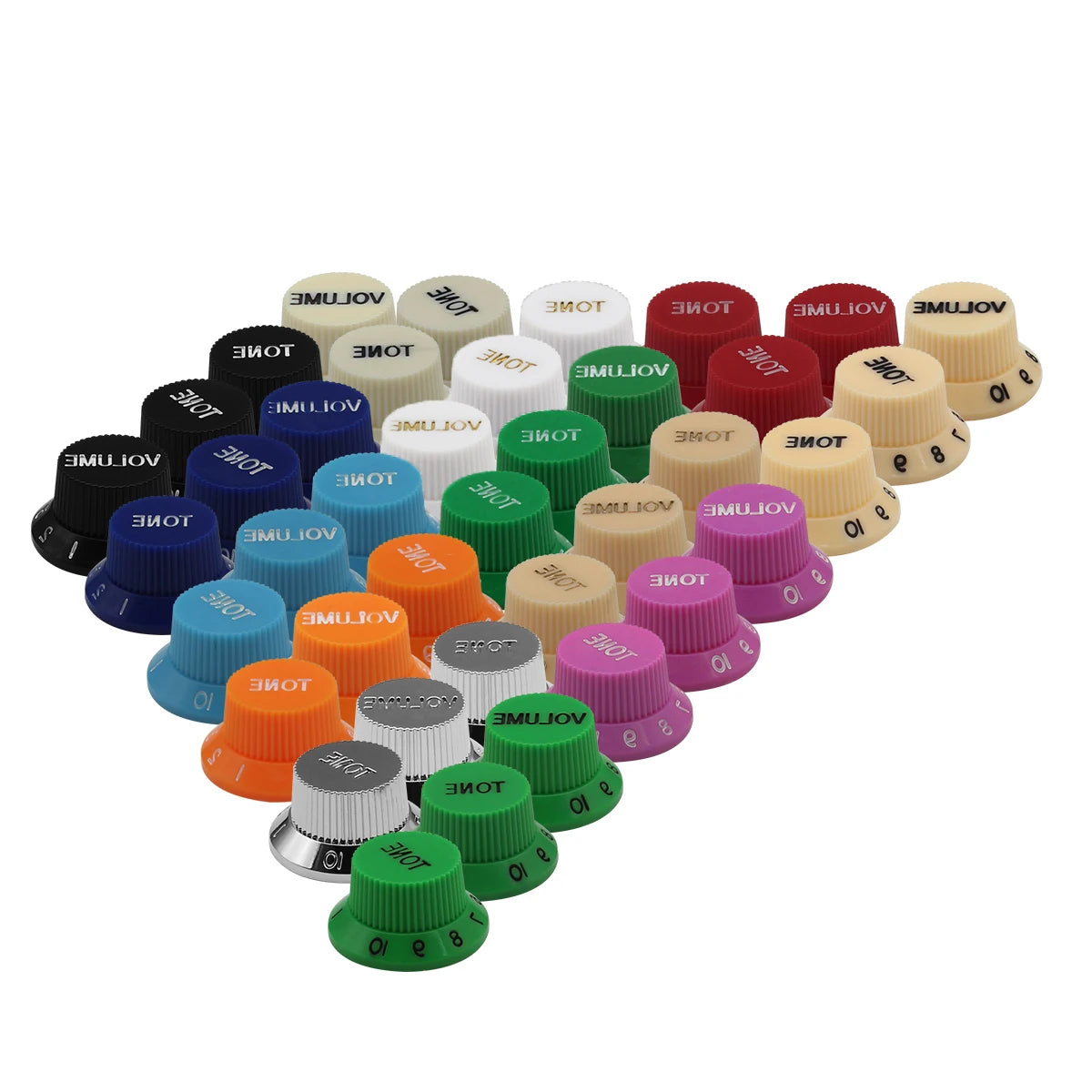 FLEOR 3pcs Plastic 2T1V Volume Tone Control Knobs High Dome Caps for ST Guitar