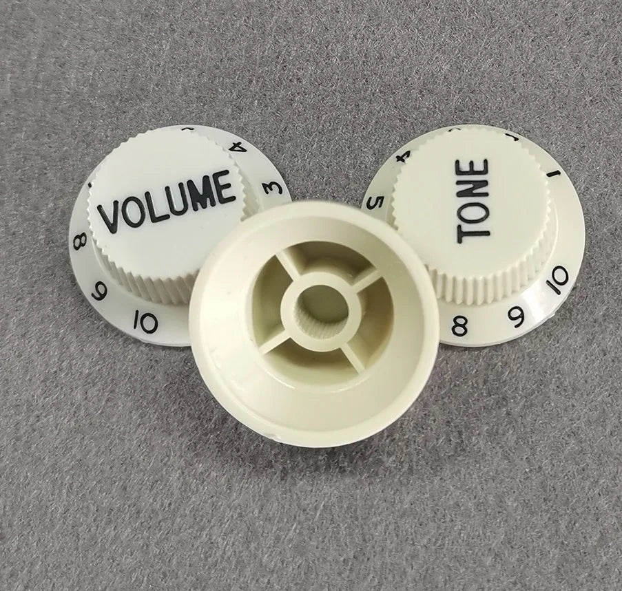 This set of three FLEOR plastic knobs is designed for ST guitars featuring a 2 tone and 1 volume control layout. The high dome caps provide a comfortable grip and classic look while allowing precise adjustment of your guitar’s electronics. Made from durable plastic these knobs are easy to install and perfect for replacing worn parts or customizing your instrument’s appearance.