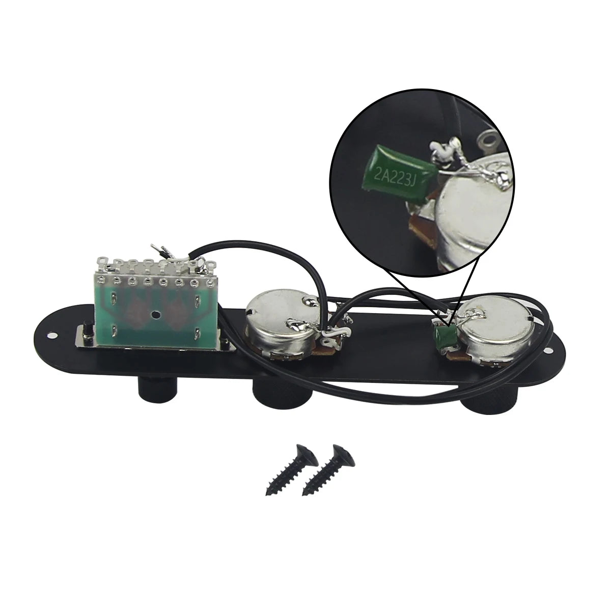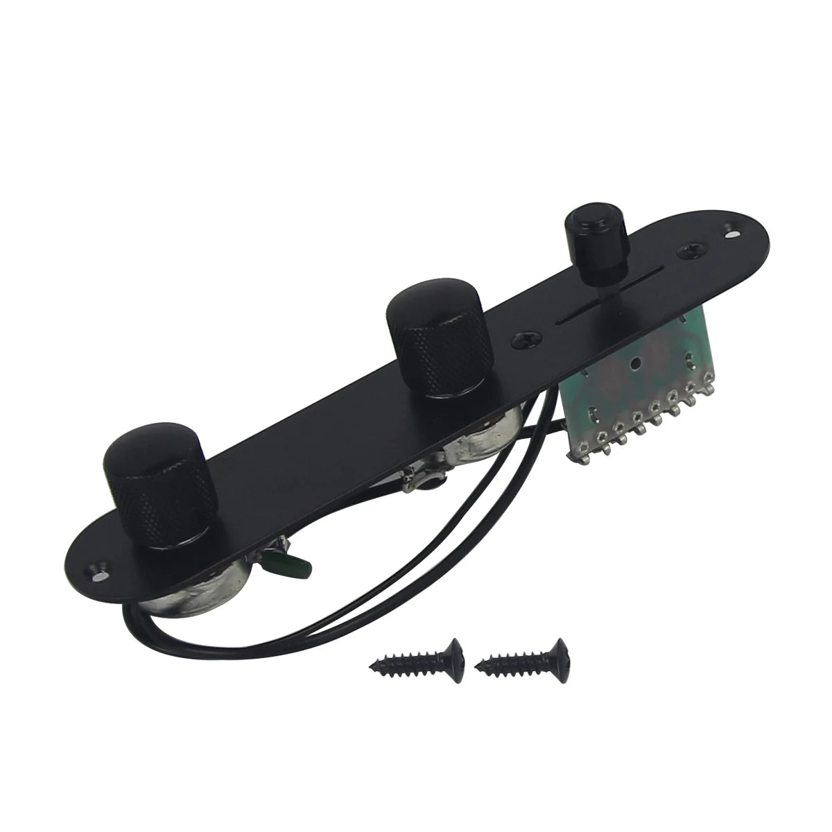 FLEOR Black Prewired TL Guitar Control Plate with a 3-way switch, designed for easy installation on your TL-style electric guitar. This pre-wired control plate comes fully assembled with pots, switch, and wiring, saving you time on your DIY projects. The black finish offers a sleek, modern look that complements a wide range of guitar aesthetics. A great choice for replacing or upgrading your TL guitar's controls while maintaining smooth, reliable performance.