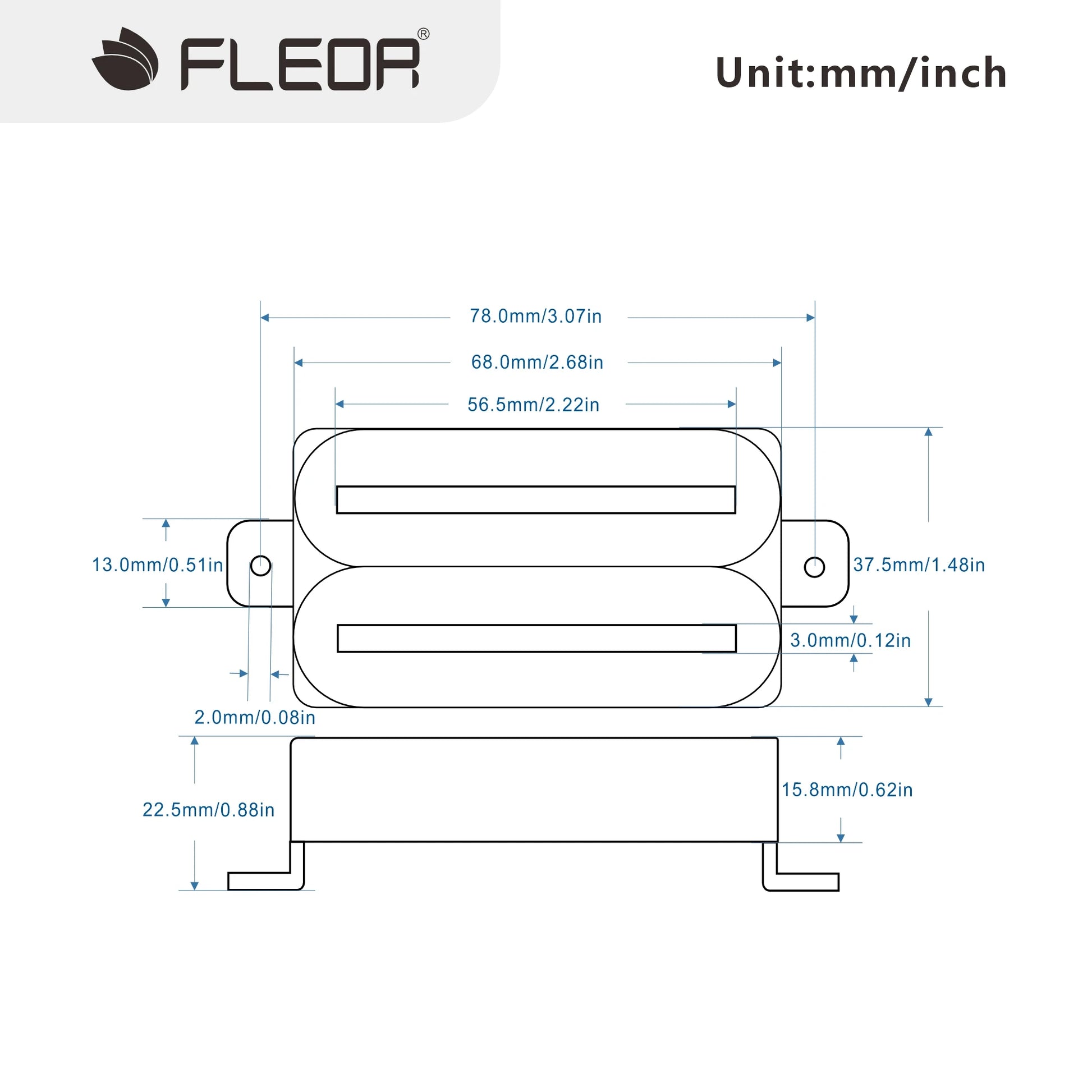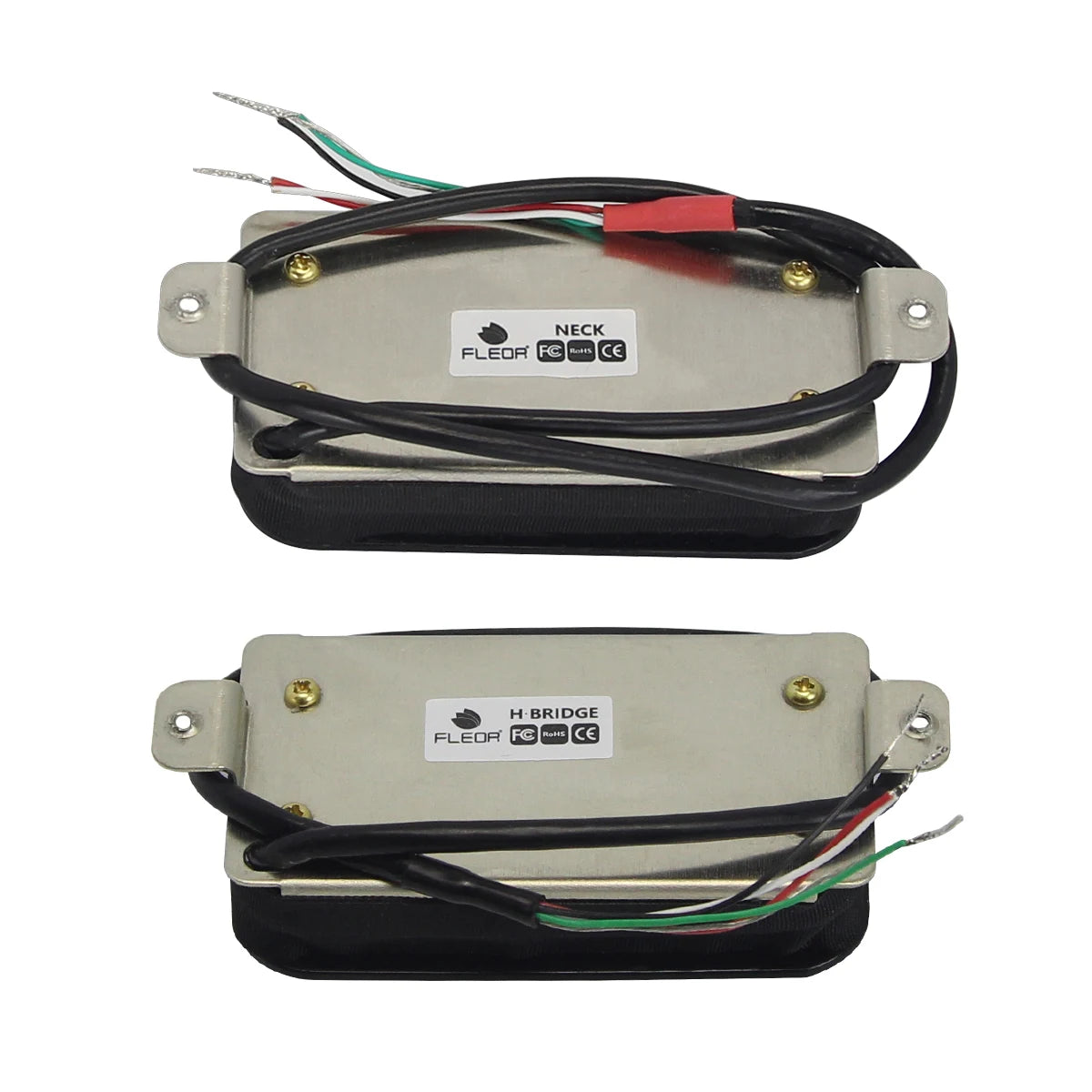 FLEOR Set of Neck and Bridge High Output Hot Dual Rail Humbucker Pickups Ceramic Available in Black or White