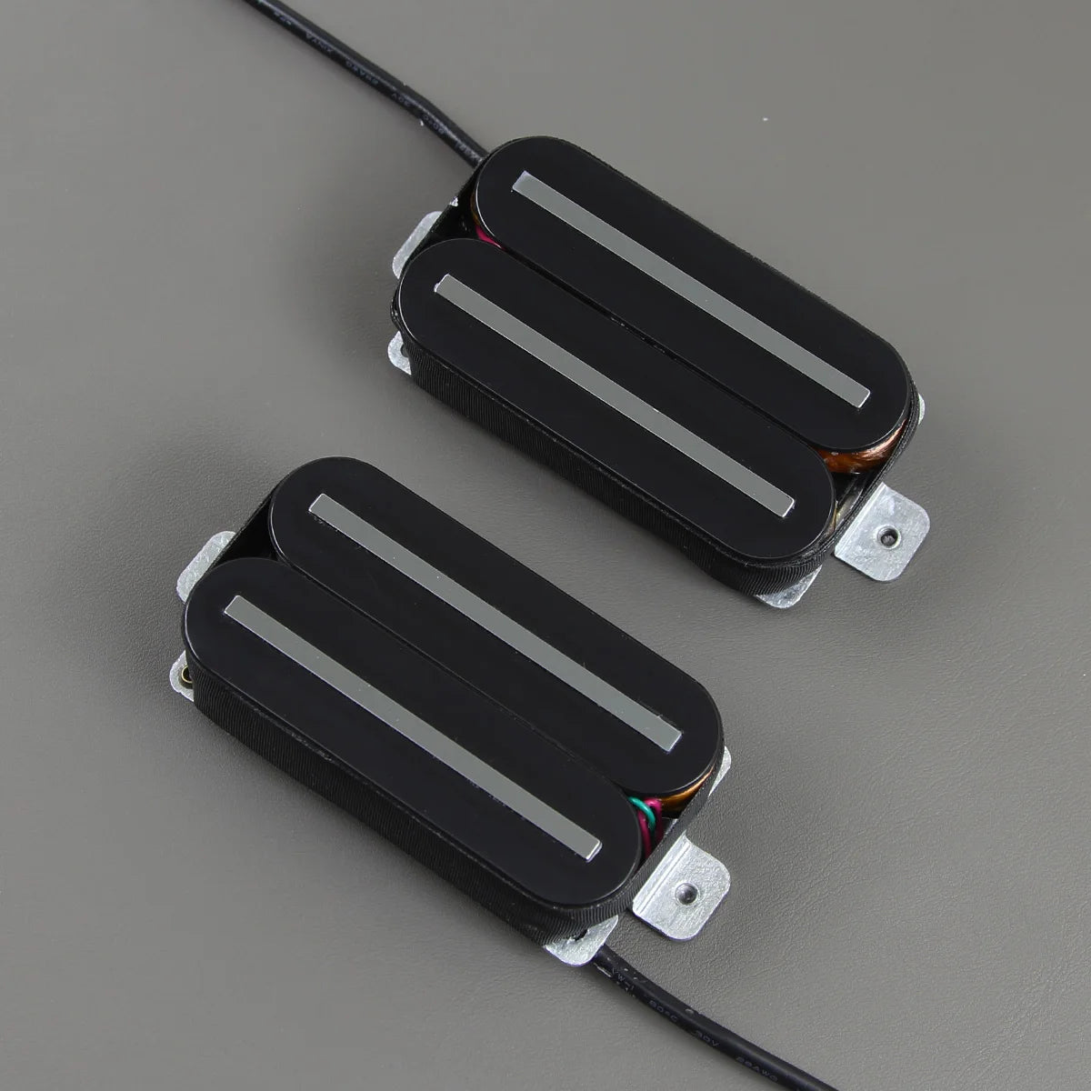 This FLEOR set includes high output hot dual rail humbucker pickups designed for neck and bridge positions. Equipped with ceramic magnets, these pickups deliver powerful tone with tight lows and aggressive mids, perfect for rock and metal styles. Available in black or white finishes they offer excellent string balance and noise reduction thanks to the dual rail design. Ideal for upgrading your guitar’s pickups with robust sound and clear definition in high gain settings.