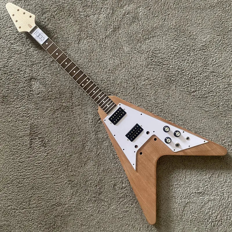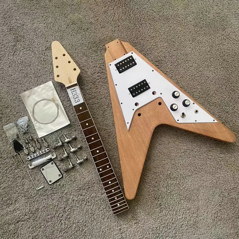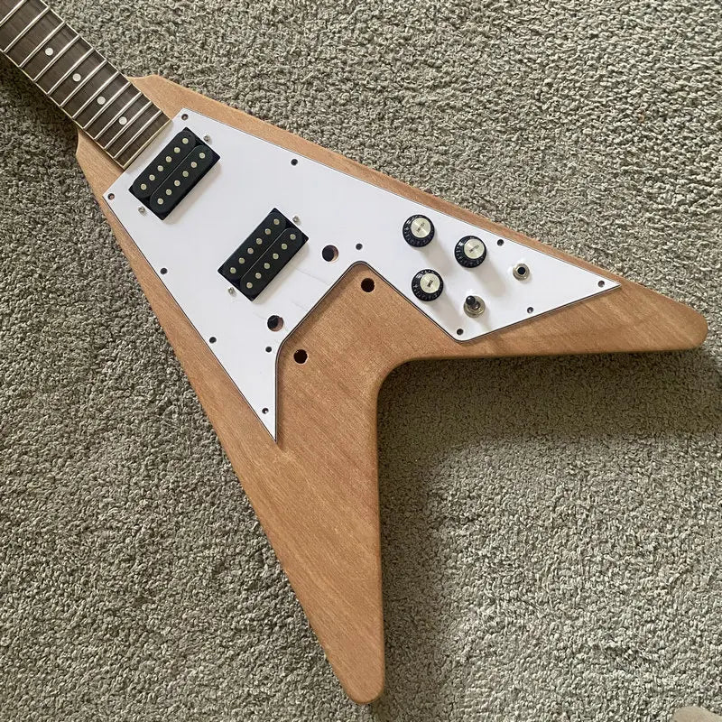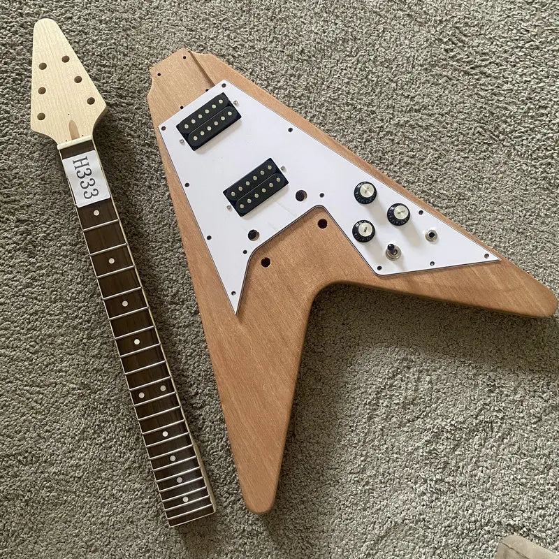 Build your own iconic axe with this DIY Flying V-style electric guitar kit. Featuring a solid mahogany body for warm, rich tones, a smooth maple neck with rosewood fingerboard for playability, and a complete hardware set included — this kit is perfect for modders, makers, and tone chasers. Unfinished and ready to be customized, it’s your sound, your way.