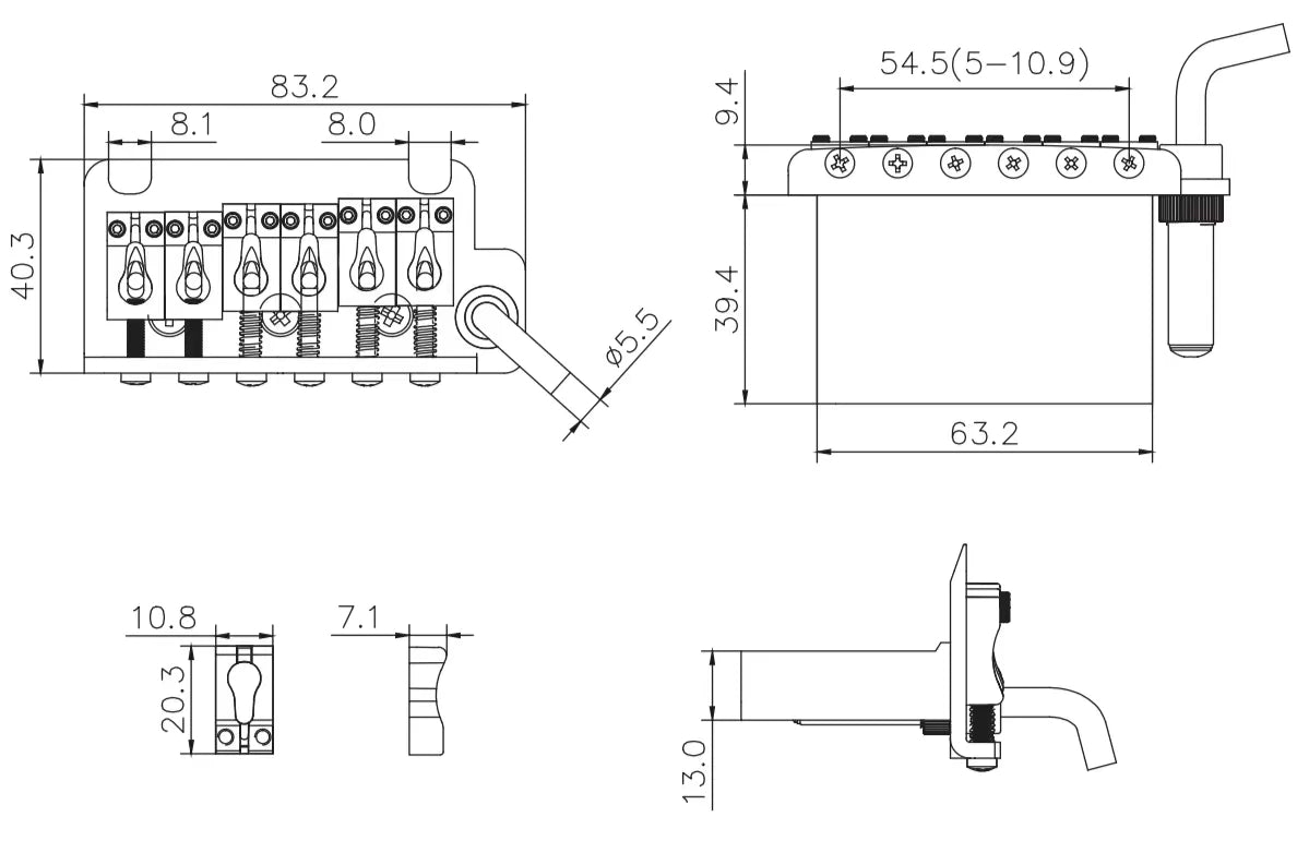 Guyker Non-locking 2 Point String Spacing 10.8MM Guitar Bridge With Tremolo System Saddle And Brass Block