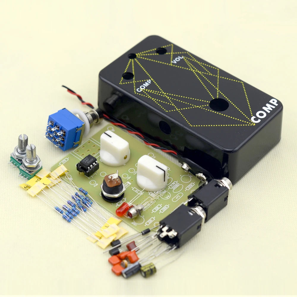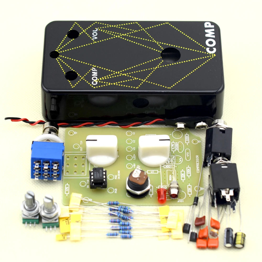 Build your own studio-style compression pedal with this all-in-one DIY kit from LANDTONE. Featuring a durable cast aluminum 1590B enclosure, this kit includes all the components you need to craft a smooth, punchy compressor effect with true bypass switching. Perfect for guitar modders and tone chasers who want hands-on control over their sound.