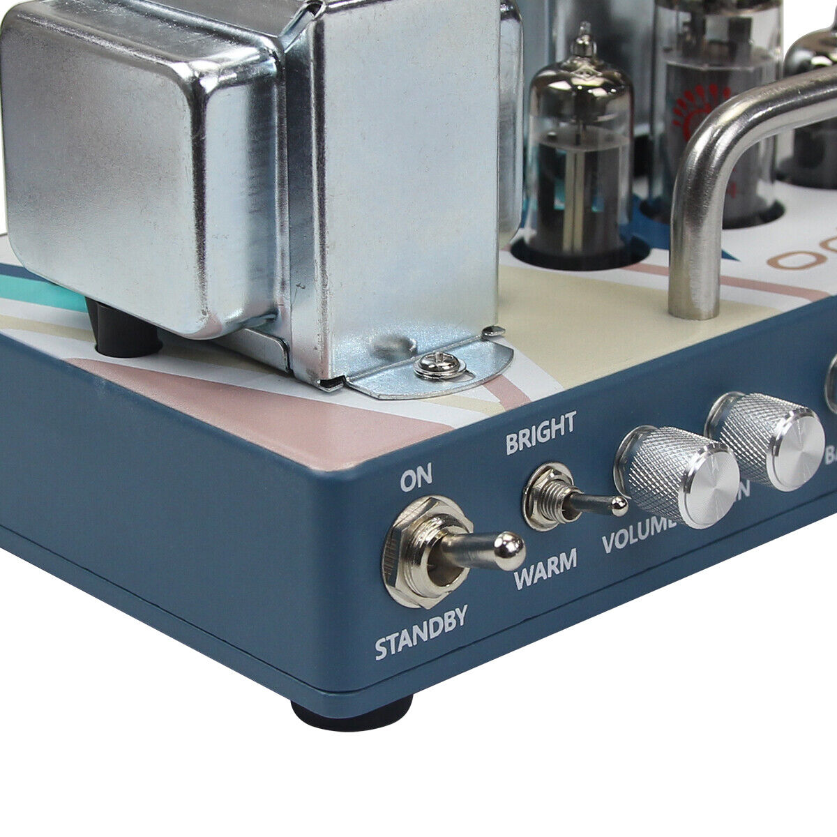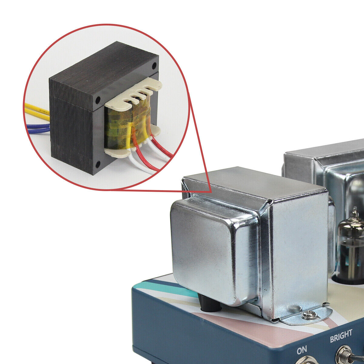 Handmade 5-watt tube amp with 12AX7 preamp tube EL84 power tube and 6Z4 rectifier full EQ with treble middle bass gain and tone switch for bright or warm voicing 8Ω and 16Ω speaker outputs high impedance input hand-wound transformer aluminum chassis voltage selector 110V/220V ideal for home studio or low-volume gigs